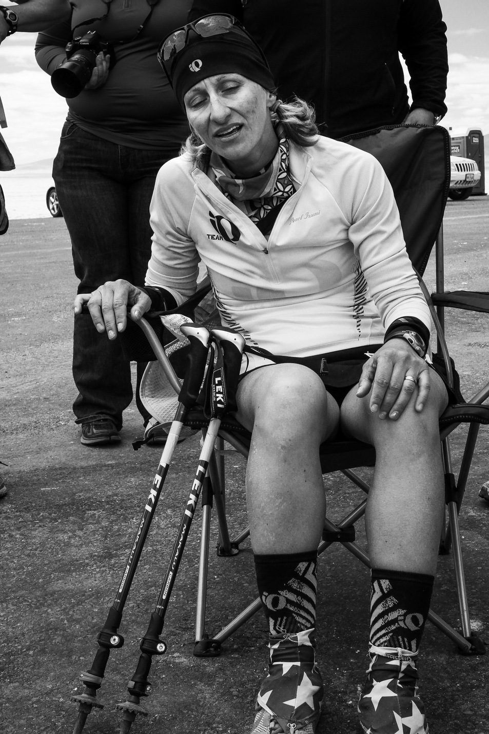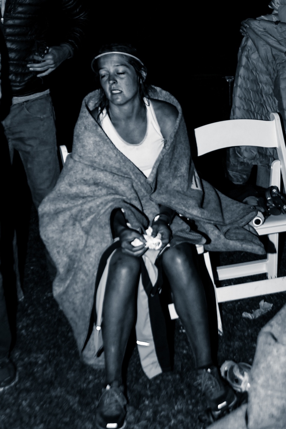 Emily finished her third 100 mile event, The Salt Flats 100 Mile Endurance Run, in just under thirty hours. On her way to the finish line she was moving well, full of fire and determination. In the time it took to get from the finish line to the chair, maybe 30 seconds or minute, the pure physical realization of the effort made itself known.