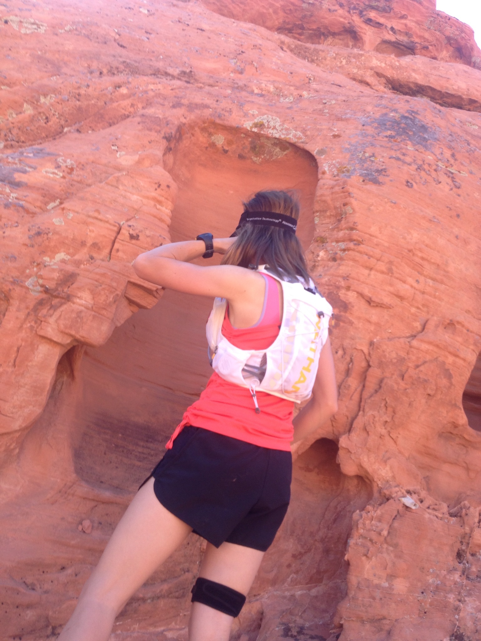 One of the most impressive aspects of this vest is the fit. The 3 separate strap systems allowed for me to customize where the vest fits at the shoulders, sides, and chest. I was most impressed with the zig zag strap across the chest: instead of causing havoc with sports bras for the girls, the innovative soft, stretchy strap kept the vest in place without any issues. It is much more flattering across the chest than all of the traditional two-strap models. All the ladies know what I’m talking about. I’m a short (5ft tall), “B-C” chested woman, and I was very impressed with how this vest fit my short torso but still accommodated the rest of me. I was also able to more accurately distribute weight across my entire upper body, which allowed me to avoid the dreaded mid-thoracic back pain that can accompany carrying a pack. I was often complimented on how “cute” the white vest was, and I appreciated how it matched whatever I end up wearing. The pockets would soothe any OCD runner, since the vest can be very organized! But I admit, I still haven’t committed to memory what I put into each pocket- so if the confusion of convenient organization can be seen as a flaw, then I would say that’s the only flaw I found!