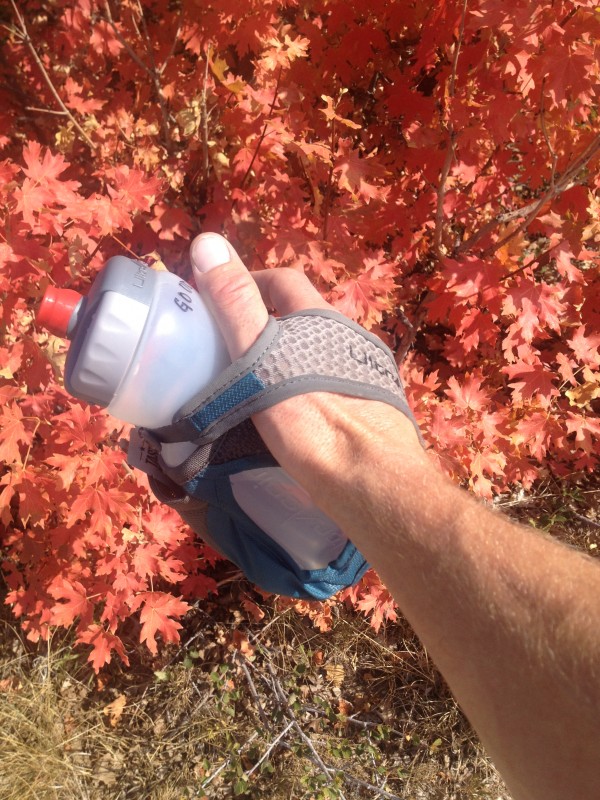 I carried the same handheld during the last 20 miles of Wasatch. I should have carried it the whole way. My iPhone plus a GU pack fit perfectly in the pocket. Good tips on new grips — I never thought to use the top as a thumb-hole.