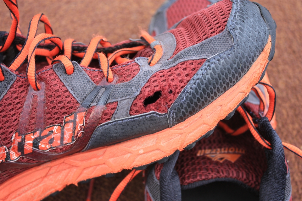 The first 120 miles were glorious. The upper is still in good shape but the lugs have lost their functionality and are now too short and floppy to provide much traction and support on the trail.