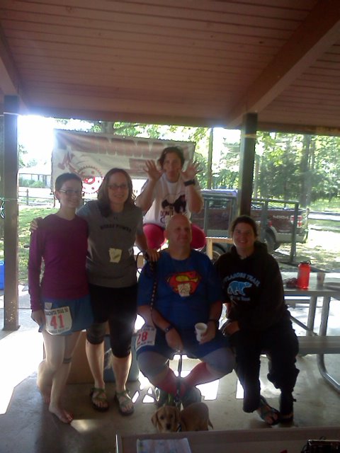 Even after the loss of a contact, I found the trail to be well marked between both the permanent blue blazes and the blue tape. I wasn’t prepared for the technicality of the trail though – when the race introduction said rocky, I thought it meant sharp and pointy; this trail was more like small boulders through some parts of the trail. Other parts of the trail were smooth and grassy, some was nearly swamp after the previous nights’ rain and the aforementioned 200 runners, and even the sections of asphalt were a welcome note of variety in the terrain.