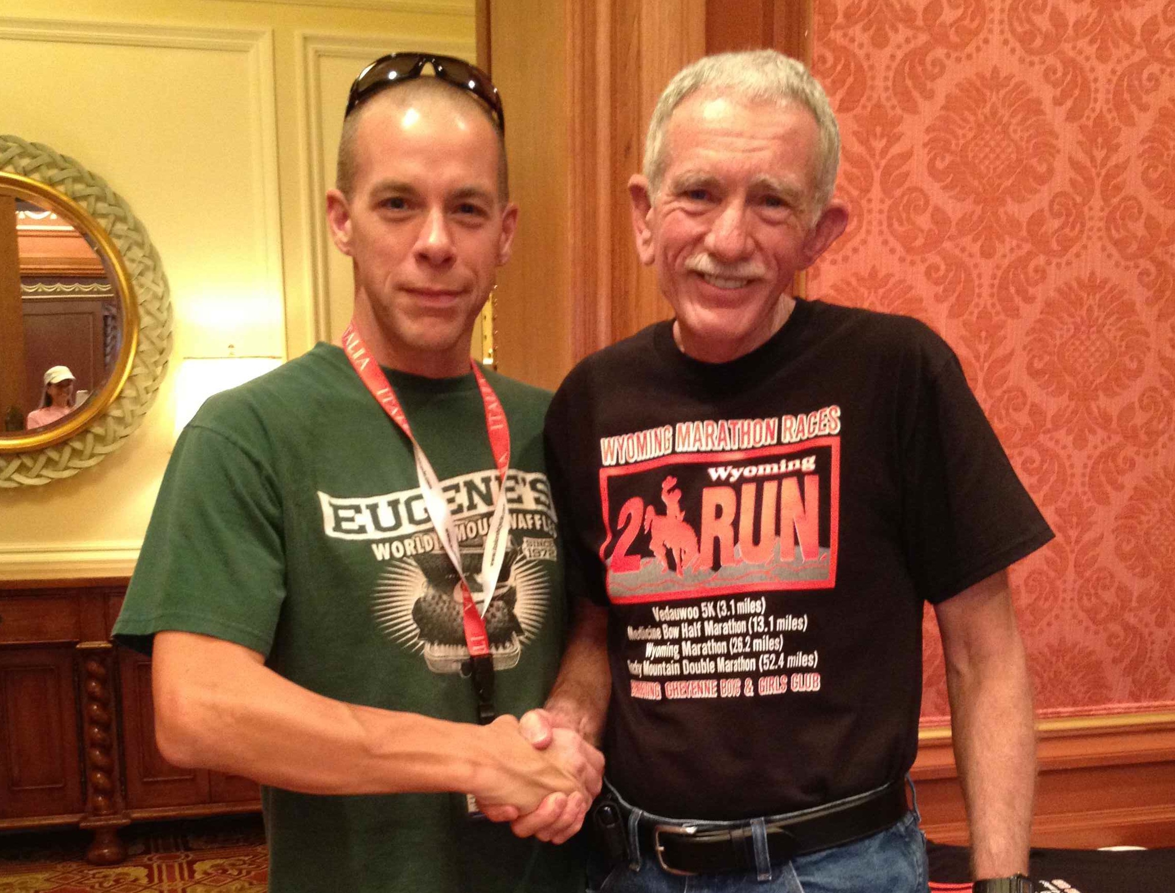 I met Brent the night before at the registration and pasta dinner at the Little America Hotel. We traded war stories and Brent even gave me some advice for running Leadville. Later that night John Raveling from Colorado was honored at the dinner for winning the 1982 Rocky Mountain 50 miler in 5:58:54! He is the only person to go under six hours on the old course from Laramie to Cheyenne.