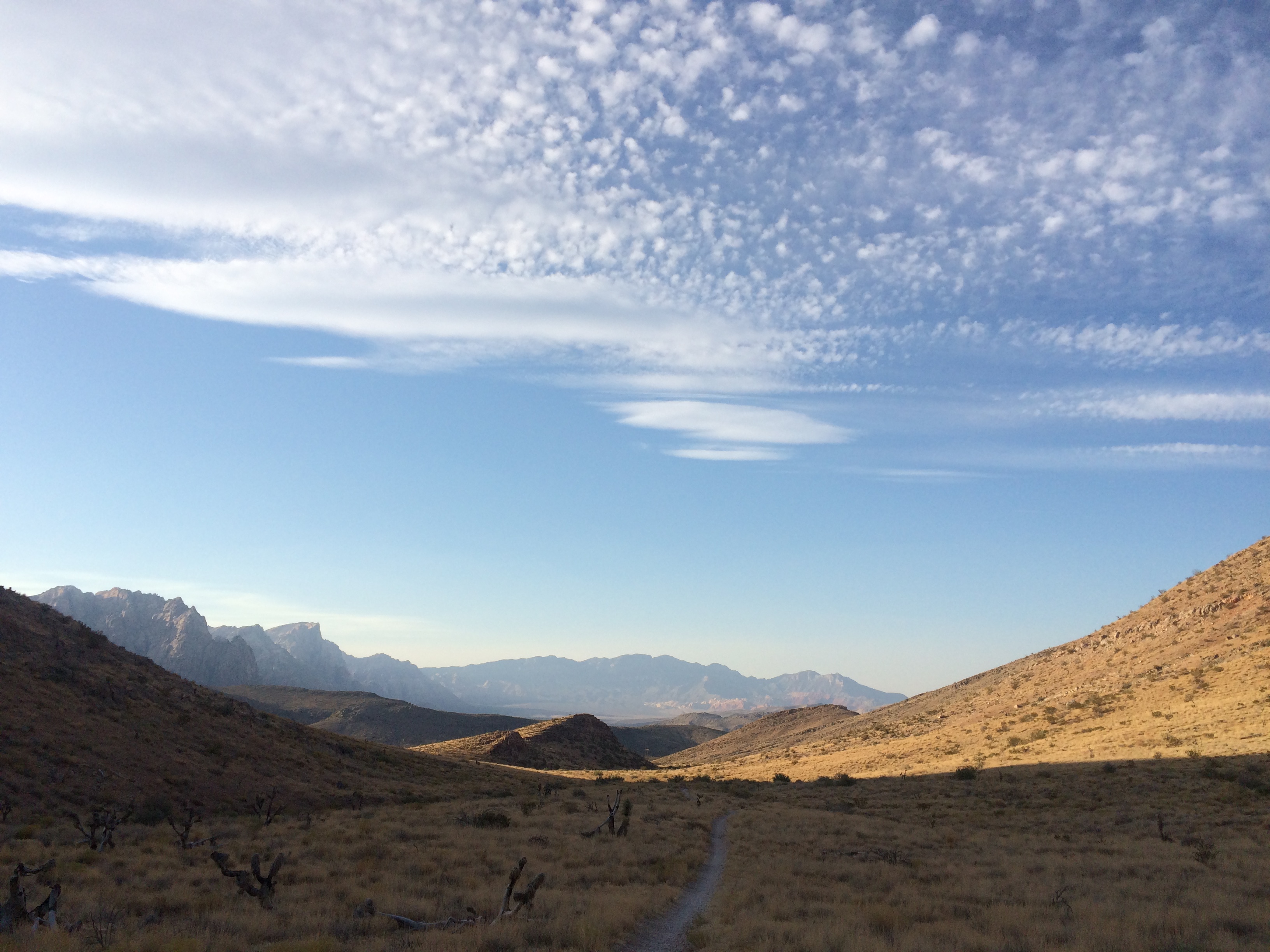 Personally, I don’t mind running when the sun is still high, although I draw the line at 110! As long as I have my hydration vest full of ice and water, I am generally good to go for about an hour. If I wait until about six or six thirty in the evening, I can usually get a couple of hours in with plenty of water to spare. Bring a headlamp if you want to do the later afternoon runs as you will not want to stop running when the sun sets. While my nutrition may be very different from the next person’s, salt on the hour and a gel every 45 minutes keeps me running strong and happy regardless of the conditions. While I have competed in races outside of the Las Vegas area, there is just something beautifully undefinable about desert trail running that keeps drawing me in. Stepping out into the desert it is like standing on the shore of an ocean. The desert, like the ocean, deserves respect. Don’t underestimate the desert, plan ahead, and bring a camera. Step out onto a desert trail and you may just fall in love. Give me my vast expansive desert trails with beauty as far as the eye can see and I am a happy trail runner.